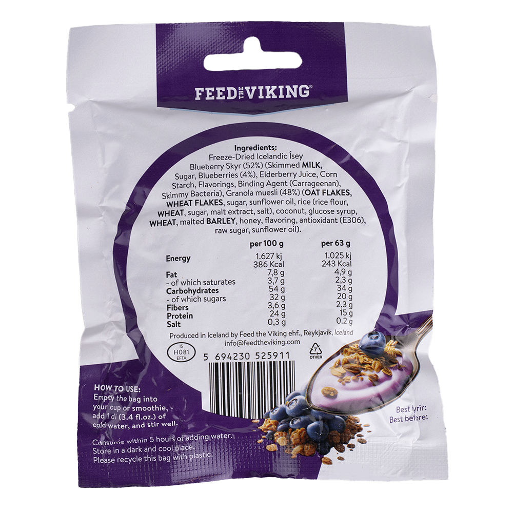 Við tókum silkimjúkt Ísey Bláberjaskyr og frostþurrkuðum það til að varðveita bæði bragð og næringu.