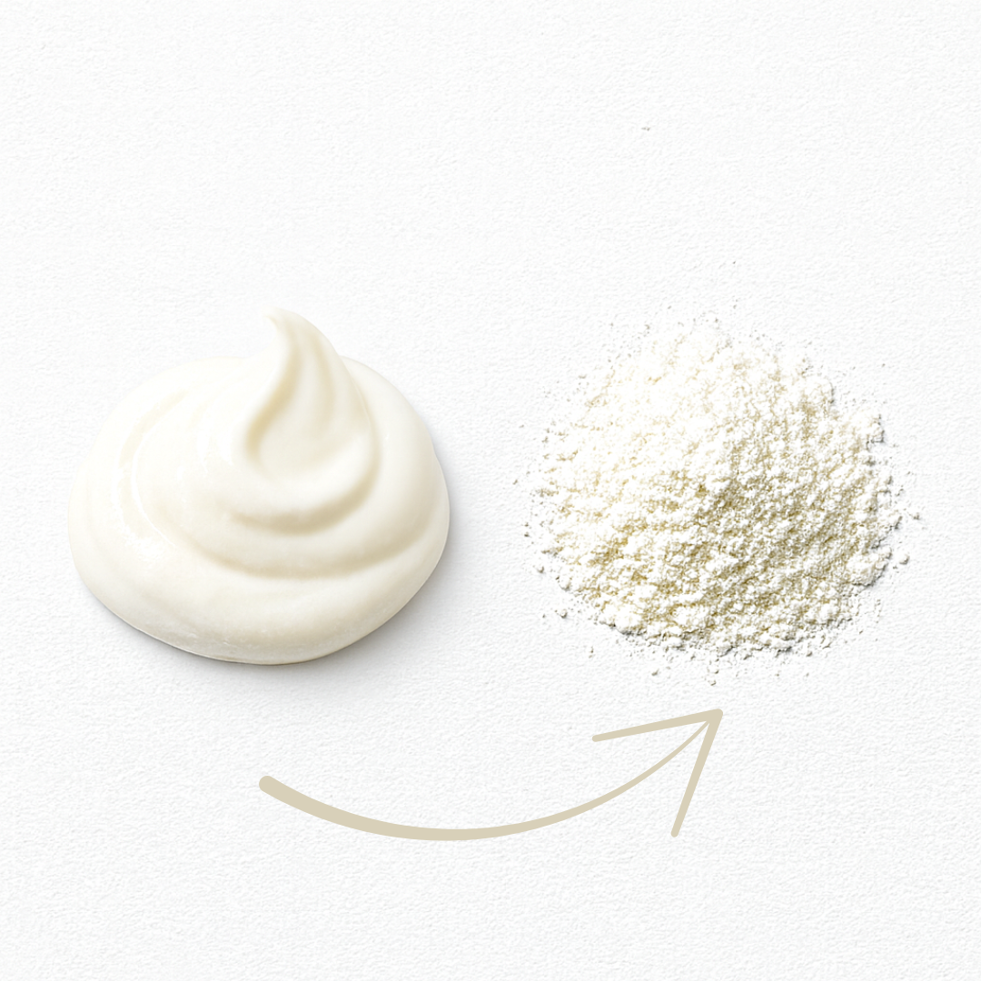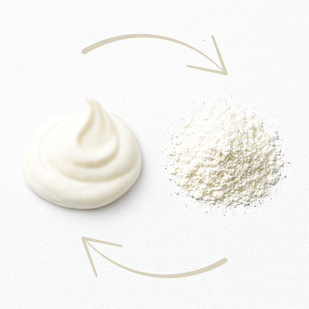Þegar þú bætir köldu vatni við duftið færðu aftur ferskt, silkimjúkt skyr.